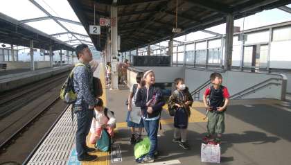 5月10日(金)学習旅行2日目,退館式を終え,ホテル専用バスで児島駅へ向かい,児島駅からマリンライナーで岡山駅へコインロッカーで荷物を預け,岡山駅から倉敷駅に向かいます。