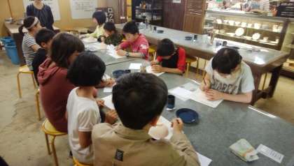 5月10日(金)学習旅行2日目,倉敷へ到着しました。倉敷美観地区の倉敷アイビースクエアで,絵付け体験をしました。おちゃわんに一人一人思い思いの絵をかきました。後日,送られてきます。とても楽しみです。