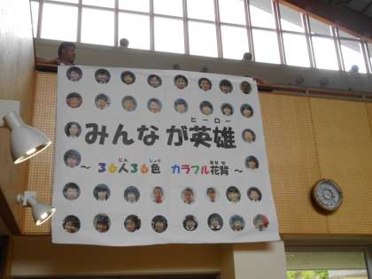 色別チームが決定して初めての色別活動「サツキ集会」が開かれました。全校にアンケートをとって決定した児生会スローガンの発表のあと,それぞれの色の旗を作りました。1人1人のめあてや色のめあて,目標となる字,イラストなどがかかれた旗が出来上がりました。1年生もお兄さん・お姉さんに教えてもらって,しっかり活動することができました。運動会にはこの旗のもと,それぞれのチームが全力を尽くすことになるでしょう。