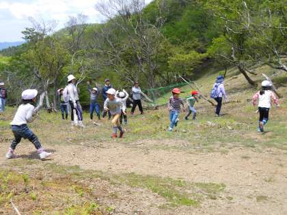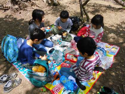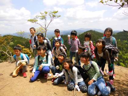 みんなのがんばりにお天道様も味方してくれ,よい登山日和となりました。途中けわしい山道もありましたが,4年生が手を貸してくれたり,「リュック持ってあげよか。」と声をかけてくれたりして,1年生も元気に登り切ることができました。頂上ではおうちの人が作ってくれたお弁当をトンビにさらわれることなく食べ,雲取山峠ではみんなでバナナおにをして遊び,楽しい校外学習になりました。