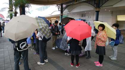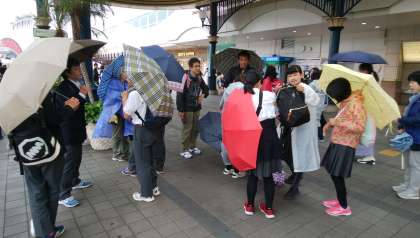 5月21日(火)修学旅行1日目,JR京葉線で東京駅から舞浜駅に到着しました。雨が降っていまう。これからは,雨の中での活動になりそうです。