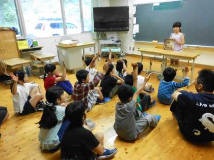 今日のお話は,いもとようこさんの「ずっとそばに・・・」でした。あたたかく優しいいもとさんの絵ですが,内容は人間に追われた動物たちが最後はもしかして・・という悲しいお話です。あとがきの作者の言葉に「人間も動物も同じ生きものです。人間の命,動物の命,どちらの命も同じ命です。人間と動物が共存できるよう・・・私たちは考えねばなりません。」とあります。子どもたちの心にも,くまさんの優しさとそれに応えようとする動物たちの優しさが浸みていったようでした。