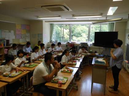 今日の給食の時間は、栄養教諭の先生のお話しを聞きながら食べました。