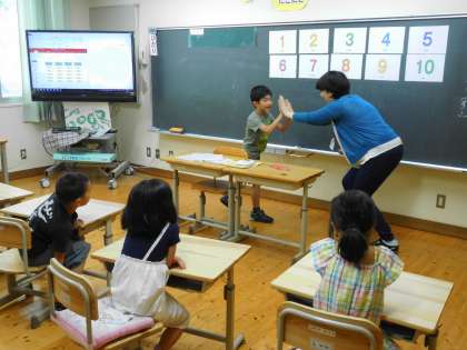 お世話になったALTの先生の最後の授業がありました。4月から英語を教えてもらっていた1年生も,今までの英語を使ったクイズをしたり,じゃんけんを英語でしたりして,名残を惜しみました。新しい学校に行かれてもがんばってくださいね。