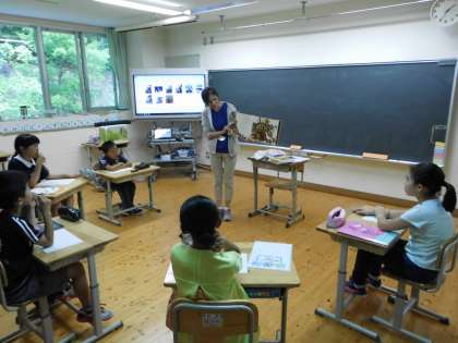 7月11日(金)の5時間目、5年生で17日の校外学習の事前学習として祇園祭について勉強しました。図書館司書の先生が本や写真を使って説明してくれました。今日のお話を聞いてさらに校外学習に行くのが楽しみになりましたね!