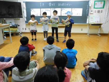 一期で,今までの音読練習の成果を発揮して,音読発表会を行いました。「声の大きさ」「言葉の明瞭さ」「声の表情」など,それぞれの学年の良さから学び合うことができました。