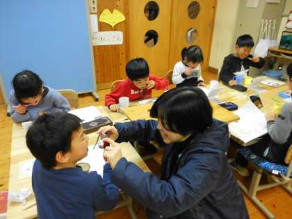 1,2年生は毎日音楽に合わせて歯磨きをしています。今日は月に1回染め出しをして,その成果をみる日です。「前より上手に歯磨きできるようになっているかな?」と期待をしながら,いつも以上に熱心に歯磨きをしました。染め出し液で赤く染まった場所が磨けていないところです。鏡を見ながら記録をし,そのあと磨き残しの赤い場所を一生懸命磨いていきました。80才まで自分の歯を20本残せたら,健康寿命が延びると言われています。大人になってもおいしいものを自分の歯で食べられるように,まわりの大人が子どもたちに歯の大切さを教えていきたいですね。