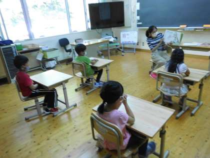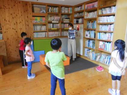毎年1回,どの期も図書館指導を受けます。1年生は初めての学校生活なので,1年生だけで学校司書の先生のお世話になって,利用前後の手洗いをはじめとして,くわしくていねいに図書館の使い方を教えていただきました。本を読み聞かせてもらったり,本の〇×クイズをしたり,図書館の本を見て回ったりしました。最後に教室で読む本をそれぞれ2〜3冊ずつ選んで,借り方も練習しました。1年生もすっかり本となかよしになりました。