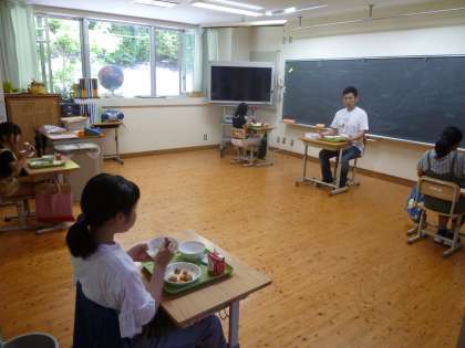 お互いの座席の間隔をしっかりととっているため,これまでのようにみんなで楽しくお話しながら食べることはできませんが,久しぶりの給食はおいしかったです。