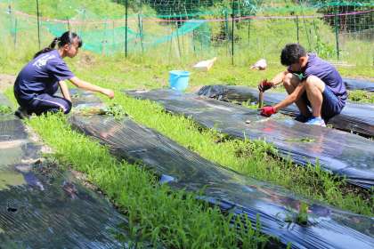 先日,9−1の花背学習では,地域活性化の提案に向けた事例づくりのために「サツマイモ」を植えました。