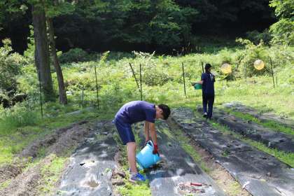感染症の影響でスタートが遅れたため,苗に元気がなく,しっかりと根付いてくれるか心配ではありますが,2人の「花背への愛あふれる情熱」をエネルギーに順調に成長してくれることを願うのみです。