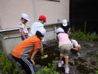 生活科で1,2年生は八桝方面に夏みつけに行きました。お天気が心配で,ずっと天気予報とにらめっこしていましたが,雨予報がだんだんずれて,いいお天気になりました。日頃の子どもたちのがんばりに,お天気様も味方してくれたのでしょう。2年生が「去年はここにきのこがいっぱいあったよ。」「ミントが今年もいっぱいになっている。」と1年生に教えてくれて,たくさんの夏を見つけることができました。交流の森での川遊びでは,箱めがねで川をのぞいて魚とりに夢中の子,川の流れにのって遊ぶ子,とそれぞれ思い思いに夏を楽しむ様子が見られました。お休みの子がいて残念でしたが,秋には是非一緒に秋みつけをしましょう。