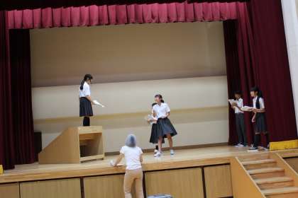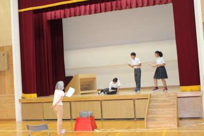 本日,9月4日(金)の3時間目に,3期の生徒6名は,学校祭・舞台発表の2回目の練習をおこないました。