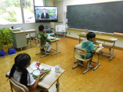 1日は「お〜いお茶新俳句大賞のオンライン入賞作品発表会」でした。どの教室も,発表会を見ながら給食を食べたり,昼休みも見たりしていました。