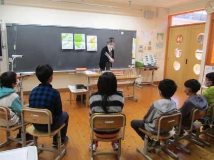 11月27日金曜日,岩倉図書館の方に来ていただいて,韓国・朝鮮をテーマにブックトークをしていただきました。日本のおとなりの国「韓国・朝鮮」はどこにあるの?どんな食べ物があるの?どんな文化があるの?どんな文字を使っているの?さまざまなことを本の中から教えていただきました。韓国・朝鮮のむかしばなしの読み聞かせもしていただいて,楽しい1時間でした。