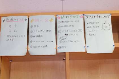 4月12日(月)の4時間目に,9年生の生徒5名は,日々の学級活動の約束を考え,その掲示物を作成しました。