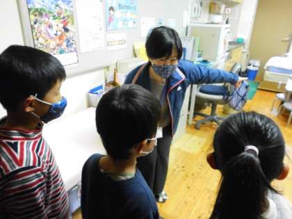19日月曜日に2年生が1年生に学校の中を案内してくれました。それぞれの部屋が何をする部屋なのか,どんなものが置いてあるのか詳しく説明してくれて,1年生もさらに学校の様子を知ることができました。2年生ありがとう。