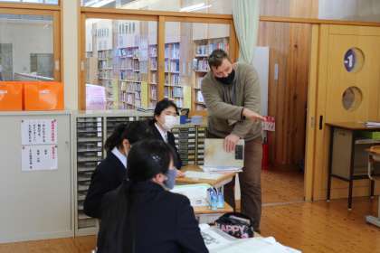先週4月16日(金)に,9年生の生徒5名は,進級して最初のALT授業をうけました。