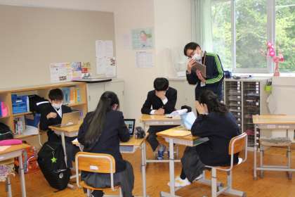 先週5月7日(金)の7時間目に,3期の生徒たちは修学旅行に向けて,それぞれの活動グループに分かれ,学習を進めました。