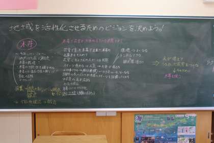 その前段として,過去の学びを土台に,自分たちの思い描く「理想の花背像」と「その実現に向けた取組」について話し合いました。