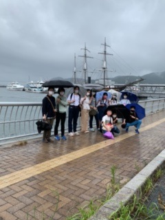 グループ別研修の前に,ホテル近くの出島で記念撮影です。