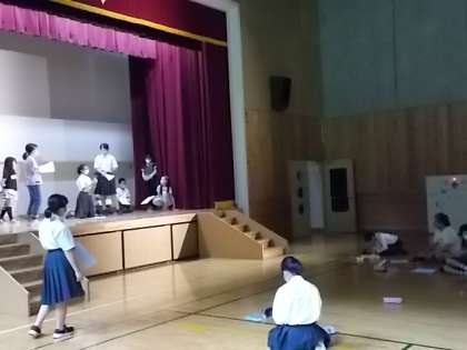 9日(金)5時間目、文化祭の劇練習を体育館で行いました。