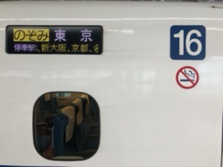博多駅で,新幹線ホームに移動し,博多駅15時39分発東京行き『のぞみ44号』で,京都まで乗車します。約3時間の旅です。