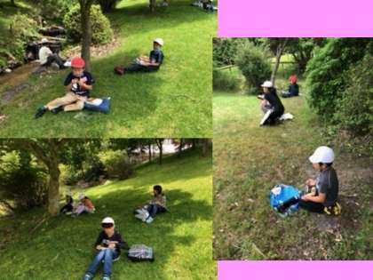 子どもたちは,何も指示をしていないのに,班ごとに集まって食べ始めました。