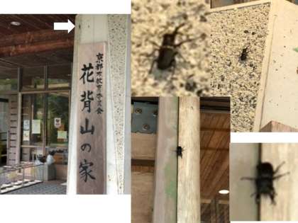 早朝,花背山の家の本館入口で,ミヤマクワガタとコクワガタに会いました。