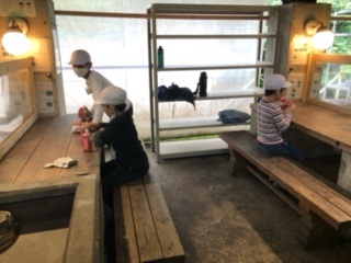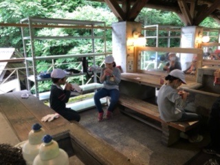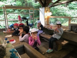 ラスト企画の野外炊事まで一休みのおやつタイムです。