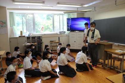 避難訓練後,体育館に集まり,校長先生からつぎのようなお話がありました。土砂災害ハザードマップで,自分の家が土砂災害警戒地域に位置しているかを確認しておきましょう。自宅付近,避難経路などの危険な場所を確認し,「早い段階での避難先」と「逃げ遅れたときの避難先」をお家の方と一緒に考えておきましょう。また,土砂災害は,大雨の後しばらくしてから起こることがあり,時差にも気を付けましょう。