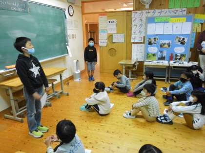 10月21日,来週にせまった校外学習「動物園」の事前学習を行いました。2回の延期で,つくったしおりも用意した給食代替えのおやつも,待ちくたびれていますが,ようやく行けそうになり,子どもたちの期待も高まります。今日も4年生の司会進行で話し合いを進め,どのチームも時間内に話し合いを終えることができました。動物園の地図を見ながら,動物園にいる動物たちを確かめているチームもありました。どうか雨が降りませんように。