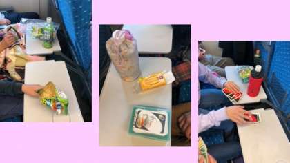 新幹線が出発すると,早速エンジョイタイムが始まりました。それは,もちろんオヤツタイム・カードゲームタイムです。。