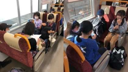 広島駅でのぞみ81号を下車し,宮島へ渡るフェリー乗り場の宮島口駅まで山陽本線に乗り換えて移動しました。全員座席に座れるくらい,車内はソーシャルディスタンスができています。