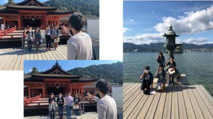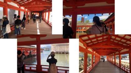 班ごとに分かれて、厳島神社を見学です。残念ですが,大鳥居は修理工事のため,その姿を見ることは出来ません。しかし,厳島神社そのものを十分に堪能しています。