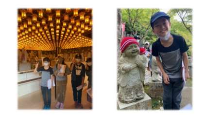 坂道を登り,大聖院に到着です。とても幻想的で感動しました。最後は,『にっこり地蔵とニッコリ!』です。ちなみに,左側が地蔵です。