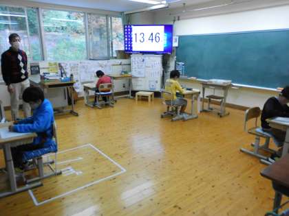 18日に一期第2回漢字大会を行いました。単調になりがちな漢字の繰り返し練習を意欲的に取り組めるように一期では年に3回の漢字大会を計画しています。前回はひらがな大会だった1年生も,漢字学習が進み,漢字の問題に取り組んでいます。1つ1つの字をていねいに息をつめるようにして書き,終わったあと何度も見返している姿を見て,漢字の習得だけではなく,集中力や根気強さを養う良い機会だと思いました。終わった後には「発表はいつですか?」と尋ねる声があり,結果発表を楽しみにしていることが分かりました。