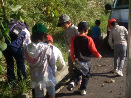5・6時間目,1・2年生は京北方面にどんぐり拾いに行って来ました!