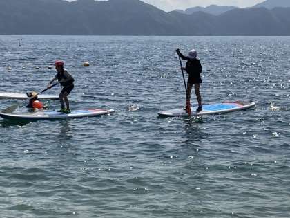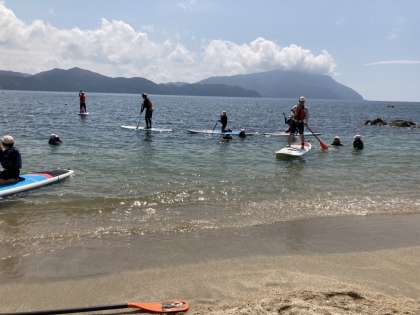 午後の活動は、SUP(スタンドアップパドルボード)です。