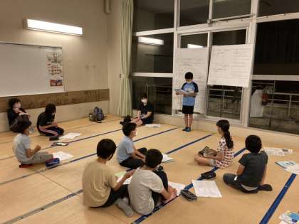 入浴を済ませ、一日の締めくくりの反省会を行いました。