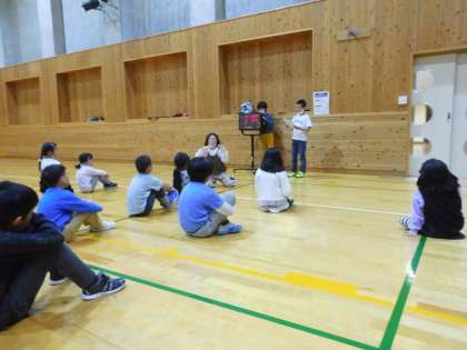 文化祭、半日入学、記録会など、大きな行事を一生懸命乗り越え、ほっと一息ついた11月18日に、一期お楽しみ会を行いました。今回も、4年生がリーダーとして企画・運営してくれて「ふえやどおに」「川わたり」「ジェスチャーゲーム」「フリスビードッジ」など4つの遊びを楽しみました。事前に1年生に、フリスビーを投げたことがあるか確認の上、休み時間に投げ方も教えてくれるなど、1年生が不安に思わないように配慮もしてくれました。ジェスチャーゲームでは急なアンコールにも応えて、即興の問題も入れてくれました。さすが4年生、素晴らしいリーダーぶりでした。たくさん体を動かして、一期全員大満足の1時間でした。