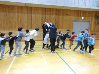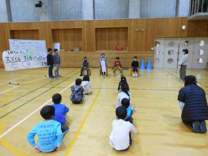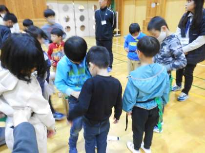 一期の1年生をむかえる会を行いました。最初に、一期のリーダーである4年生が考えたスローガンの発表がありました。今年の一期のスローガンは「スマイル 協力 ハッピー 一期」です。スローガンの通り、みんな笑顔で 力を合わせて 楽しい活動をしていきたいと思います。その後、1年生が大きな声でしっかり自己紹介をし、たくさんはく手してもらいました。遊びは、じゃんけん列車、しっぽとり、ドッジビーの3つ。どれも1年生が楽しめる遊びばかりです。しっぽをつけるときに上学年のおにいさん、おねえさんたちが、1年生につけてあげている姿も見られました。4年生が上手にリードして、楽しい1年生をむかえる会になりました。