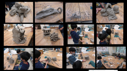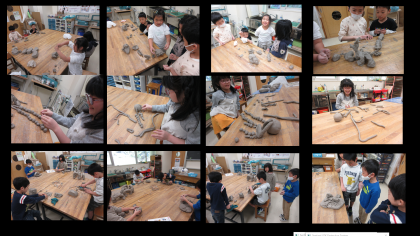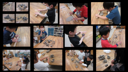 1〜4年生は、土粘土を使って、造形遊びに取り組みました。粘土の感触や特徴を手と体全体を使って感じ取り、表現を楽しみました。