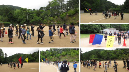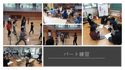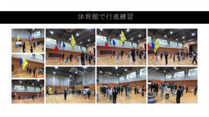 運動会に向けて、演奏しながら行進する練習に取り組んでいます。運動会のスタートを盛り上げるべく、全校児童生徒で頑張っています。