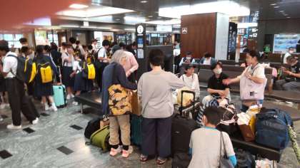 乗り換えの博多駅は修学旅行生で大混雑です。