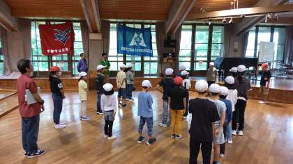 入所式をオリエンテーションホールで行い、校旗を掲揚しました。