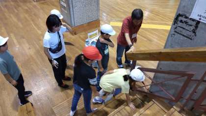 班ごとに分かれて館内ラリーに取り組んでいます。