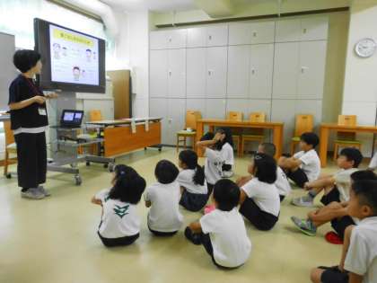 2学期の保健指導がありました。最初に保健室の先生から「早寝早起き朝ごはん」がなぜ大切なのかのお話をしてもらいました。夏休みに少し生活習慣が乱れてしまった人も、改めて自分の生活を振り返ることができました。その後、体重・身長・視力を測りました。みんな身長がぐんと伸びていましたが、夏の暑さからか体重はさほど増えていない子がいました。これから秋に向けて心身共に伸びる時期です。「早寝早起き朝ごはん」で、ぐんぐん成長してほしいと思います。