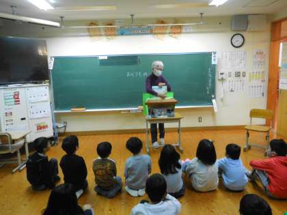 先生による本の紹介がありました。スーザンバーレイの名作「わすれられないおくりもの」です。「アナグマはどんな贈物をみんなにしたのでしょう。」という問いかけに、子どもたちもさまざまに想像を巡らせているようでした。自分はどんな贈物をすることができているのか自分の行動を振り返って考えることができますので、大人の人にも読んでほしい1冊です。