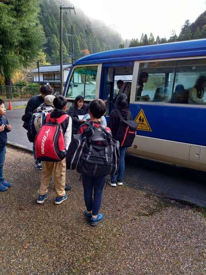 事前学習で学んだことを確かめたり、新たな気づきを見つけたりしようと意欲満々の出発式でした。